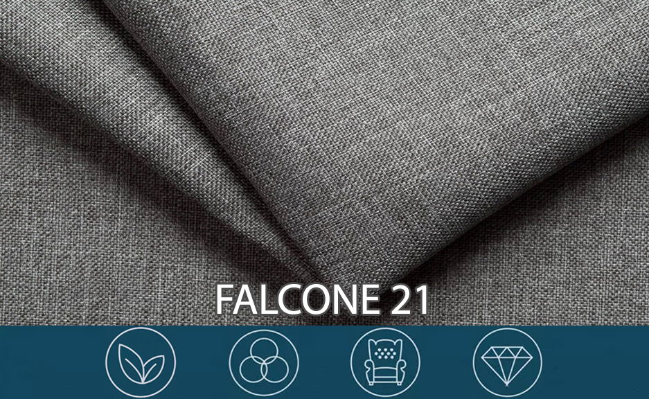 Potahové látky Falcone jsou velmi pěkné a příjemné na dotek, jedná se o culík s jemnou vazbou a dvoubarevným efektem, pletený materiál zpomalující hoření a certifikovaný podle OEKO-TEX, ideální na čalouněný nábytek, přehozy, přikrývky, závěsy a polštáře.