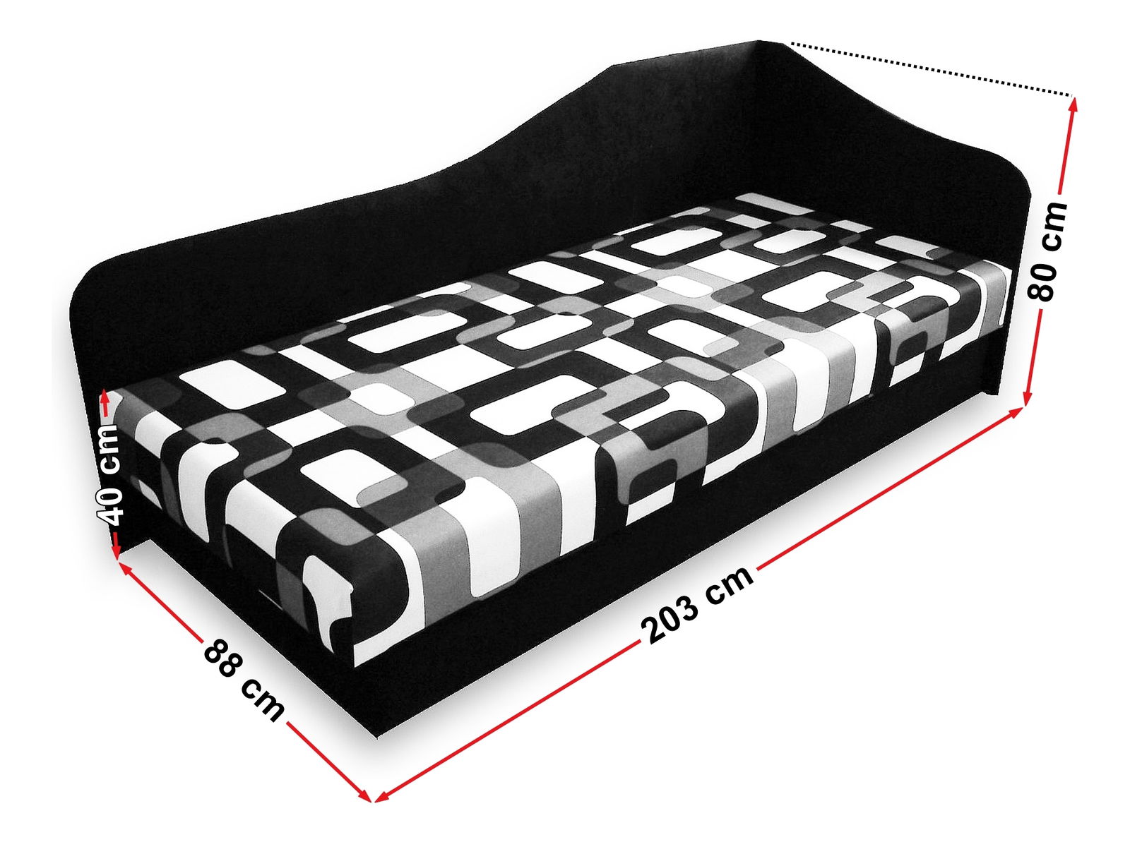 Stylová válenda, která pěkně zapasuje do rohu dětského či studentského pokoje. Využijete ji iv menším bytě. Ložnou plochu tvoří pěnová nebo pružinová matrace. Kromě toho disponuje i praktickým úložným prostorem, který se otevírá zboku postele.