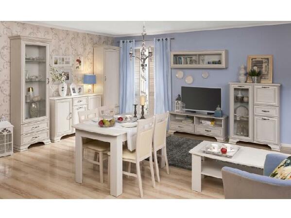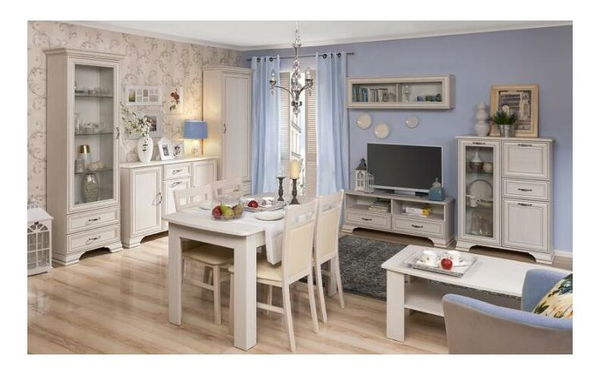 Jídelna Tanya v jemném provedení woodline krém vnáší do prostoru pocit elegance a lehkosti. Vitrína Tanya 1W2S a barová skříňka Tanya 1D1W1S1B jsou ideální pro vystavení dekorací či nádobí, přičemž komoda Tanya 3D1S poskytuje praktický úložný prostor. TV stolek Tanya 2S a polička Tanya 1W efektivně využívají prostor pro multimédia. Komfort jídelního stolu Olivia pro 4 až 6 osob a konferenční stolek Tanya 100 dotváří útulnou atmosféru pro společné stolování a relax.