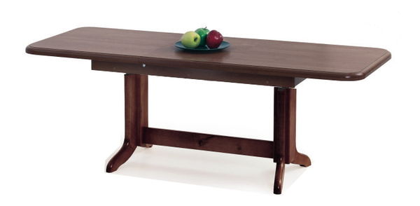 Praktický rozkládací stolek najde své uplatnění jak v jídelně, tak v obývacím pokoji, pracovně či restauraci. Jeho výhodou je možnost upravit rozměry i ve vertikálním i horizontálním směru. Jednoduchým pohybem uděláte z konferenčního stolku s výškou 64 cm stůl jídelní s výškou 76 cm. Pokud k němu potřebujete usadit více osob víte ho rozložit ze šířky 120 cm až na 158 cm. Nohy jsou z bukového masivu nalakované na odstín dřeva kaštan. Vrchní deska je z laminované MDF.