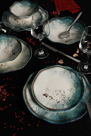 Rozměry hlubokého talíře: 22 × 22 × 3 cm (6 kusů)