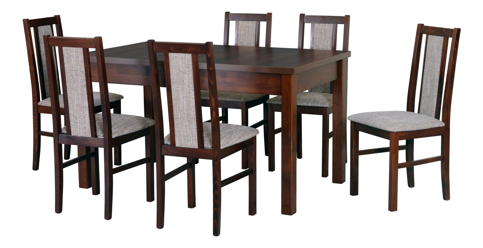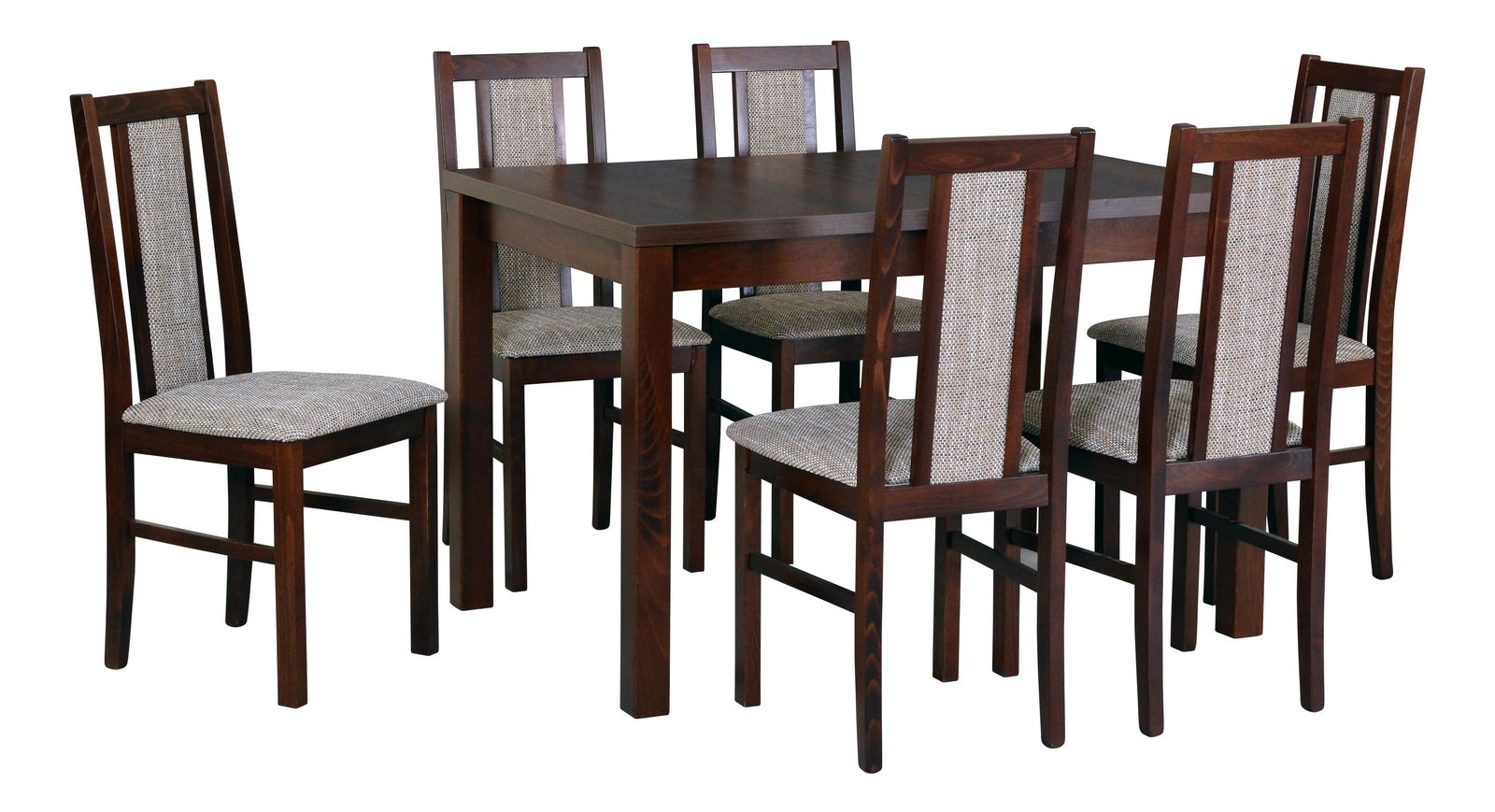 ZobrazitJídelní set Aldon je vhodný pro 6 až 8 osob a skládá se ze stolu a židlí v kvalitním ořechovém provedení. Stůl má rozměry 78 x 140-180 x 80 cm a deska je vyrobena z laminátu o tloušťce 32 mm. Nohy mají tloušťku 65 x 65 mm. Židle mají výšku sedu 48 cm a nosnost 120 kg. Při výběru jiného barevného provedení se požaduje záloha 50% z ceny produktu s DPH předem. Rozměry balíků jsou: č.1 – 149x14x85 cm/37,9 kg, č.2 – 80x12x28 cm/7 kg, č.3 – 100x55x43 cm/11,6 kg.