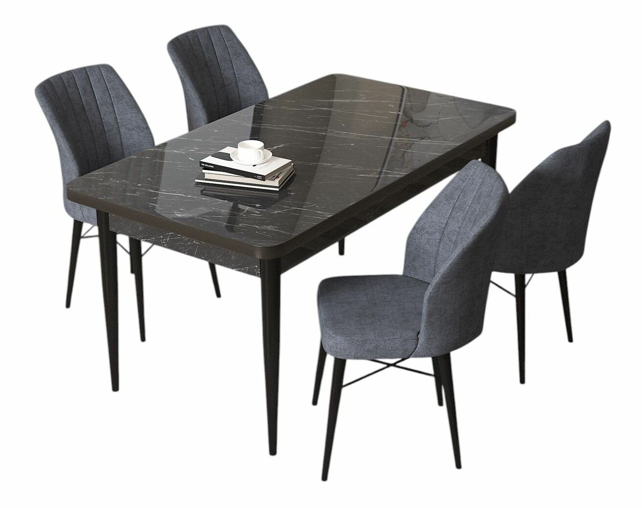 Jídelní set Arpo L (mramor černý + kouřová) (pro 4 osoby)