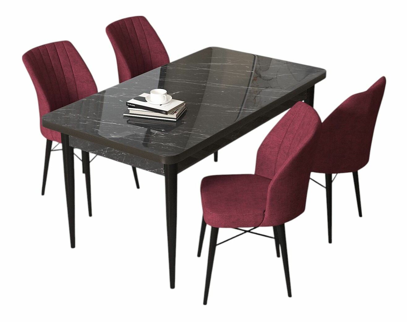 - Jídelní set Arpo (mramor černý + vínová) (pro 4 osoby)
