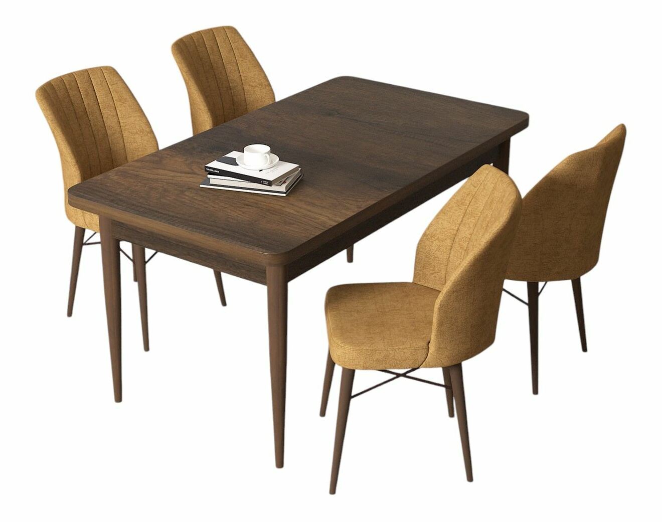 Jídelní set Arpo (ořech barokní + hnědá) (pro 4 osoby)