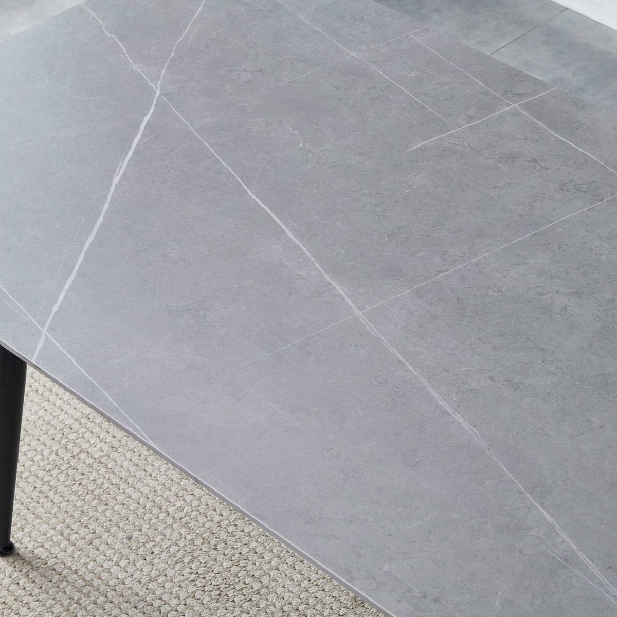 ZobrazitModerní jídelní set v industriálním stylu je skvělou volbou pro vaši jídelnu. Obdélníkový stůl s deskou ze slinuté keramiky v šedém mramorovém dekoru působí elegantně a je odolný vůči poškrábání. Stabilitu zajišťují černé kovové nohy s jemně kónickým tvarem. Pohodlné židle mají čalounění z hladké černé látky a ergonomicky tvarovanou opěrku pro maximální komfort. Černé kovové nohy ladí se stolem a dodávají celku jednotný vzhled. Ideální volba pro stylové a funkční stolování.