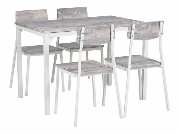 Tato 5-dílná jídelní souprava v moderním stylu bude vypadat skvěle v každém interiéru. Odolná deska stolu vyrobená z MDF materiálu dokonale ladí s bílým ocelovým rámem s práškovou povrchovou úpravou. Pohodlné sezení zajišťují prostorná sedadla a dokonale tvarovaná opěradla. Díky kompaktní velikosti a možnosti zasunutí židlí pod desku stolu je tato souprava skvělým řešením i do menších jídelen.
