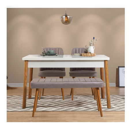 Jídelní set Bimuvo 4 (borovice atlantická + bílá + šedá) (pro 4 osoby)