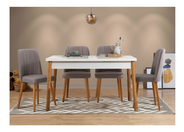 Jídelní set Bimuvo 5 (borovice atlantická + bílá + šedá) (pro 4 osoby)