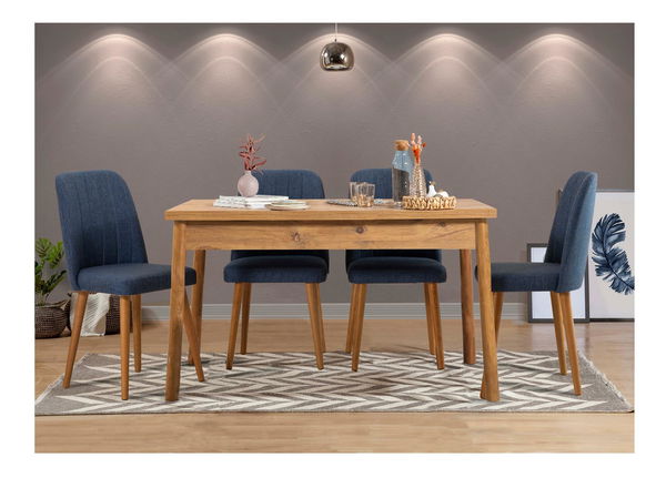Jídelní set Bimuvo 5 (borovice atlantická + námořnická modrá) (pro 4 osoby)