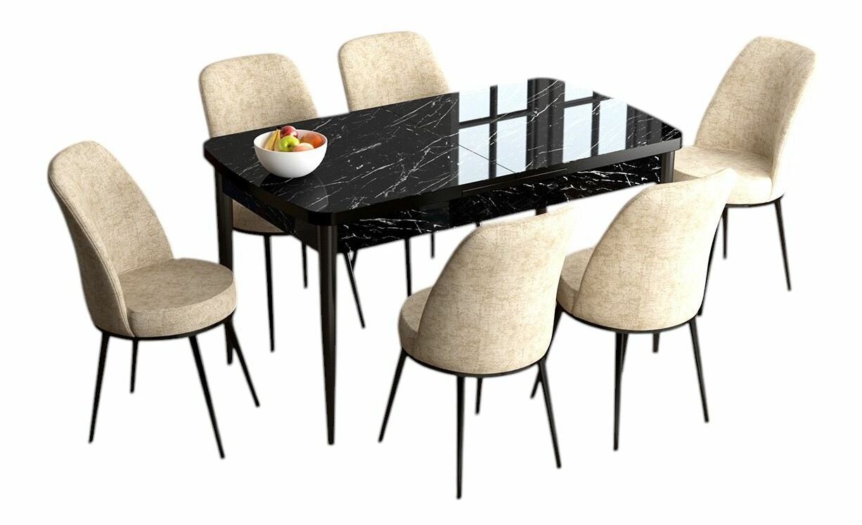 Jídelní set Hana (mramor černý + cappuccino) (pro 6 osob)