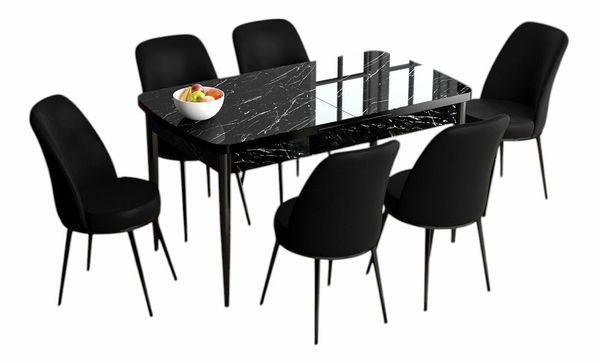Jídelní set Hana (ořech barokní + černá) (pro 6 osob)