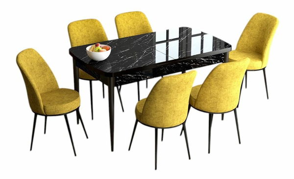 Jídelní set Hana (ořech barokní + hořčicová) (pro 6 osob)