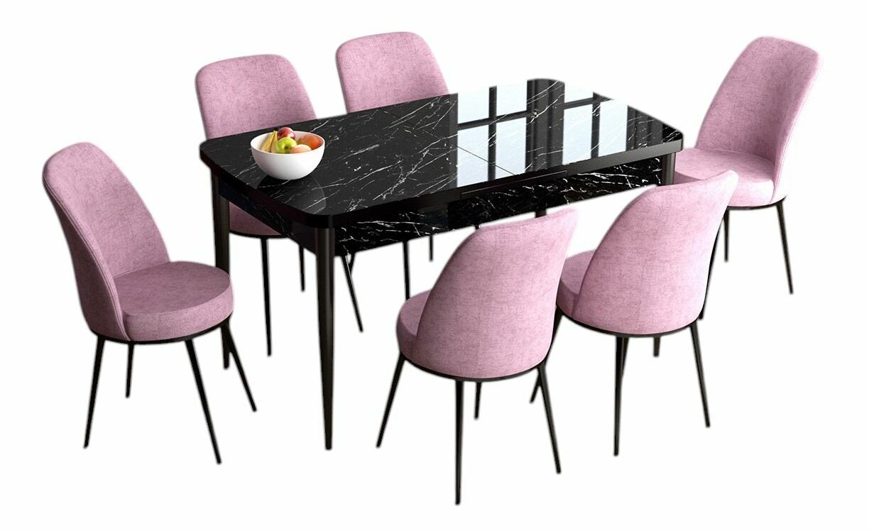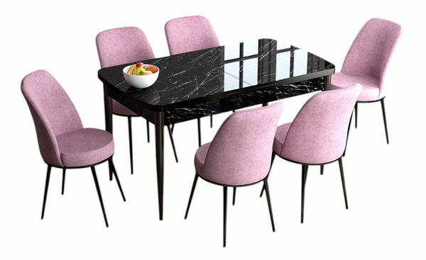 Jídelní set Hana (ořech barokní + růžová) (pro 6 osob)