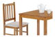 Elegantní jídelní set skládající se z 2 židlí a jídelního pevného stolu. Horní deska stolu má čtvercový tvar. Sestava je vyrobena z kaučukového masivu v moření dub. Sedák židlí je čalouněný potahem ve světlém provedení.