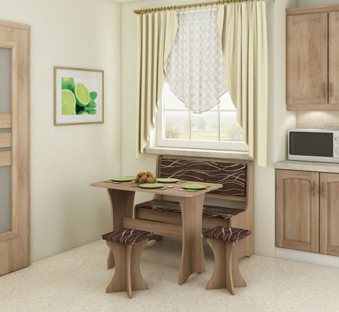 ZobrazitJídelní set složený ze dvou taburetek, jídelního stolu a lavice. Jídelní stůl v provedení dub sonoma světlá je svým rozměrem určen pro 4 osoby. Stůl má výšku 72 cm, šíře 100 cm a hloubku 60 cm. Lavice na sezení pro 2 soby, která uspokojí svou stabilitou a odolností. Provedení je dub sonoma světlá a čalouněný sedák je vyroben z látky Safari. Výška je 88 cm, šířka 104 cm a hloubka 50 cm. Taburetka, která uspokojí svou stabilitou a odolností, jelikož sedák je upevněn na křížový pevný dřevěný podstavec. Provedení je dub sonoma světlá a čalouněný sedák je vyroben z látky Safari. Výška je 45 cm a šířka čtvercové základny je 30 cm.