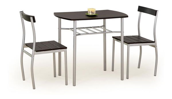 Jídelní set Lizze (wenge + stříbrná) je vyroben z laminovaného MDF a práškově lakované oceli. S výškou 75 cm a hloubkou 50 cm je ideální pro malé a střední jídelny. do 5 balíků s různými rozměry – balík č. 1 má rozměry 87x52x13 cm a váží 18 kg. Tento set je dokonalým doplňkem pro vaši jídelnu a přinese do ní moderní a elegantní styl.