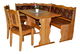 Rohový jídelní set nabízí dostatek místa k sezení a díky rohové lavici ušetříte potřebné místo v jídelně nebo kuchyni. Kromě rohové lavice set sestává ze stolu a dvou židlí. Čalounění je provedeno z trvanlivé látky šenil se vzorem. Máte na výběr ze dvou provedení dřeva: tmavý ořech nebo světlou olši.