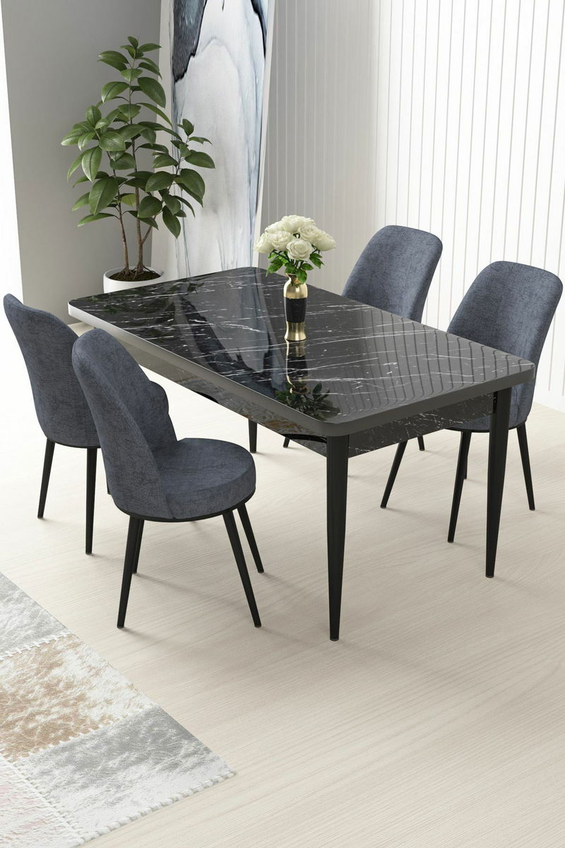 Jídelní set Nilla (mramor černý + růžová) (pro 4 osoby)