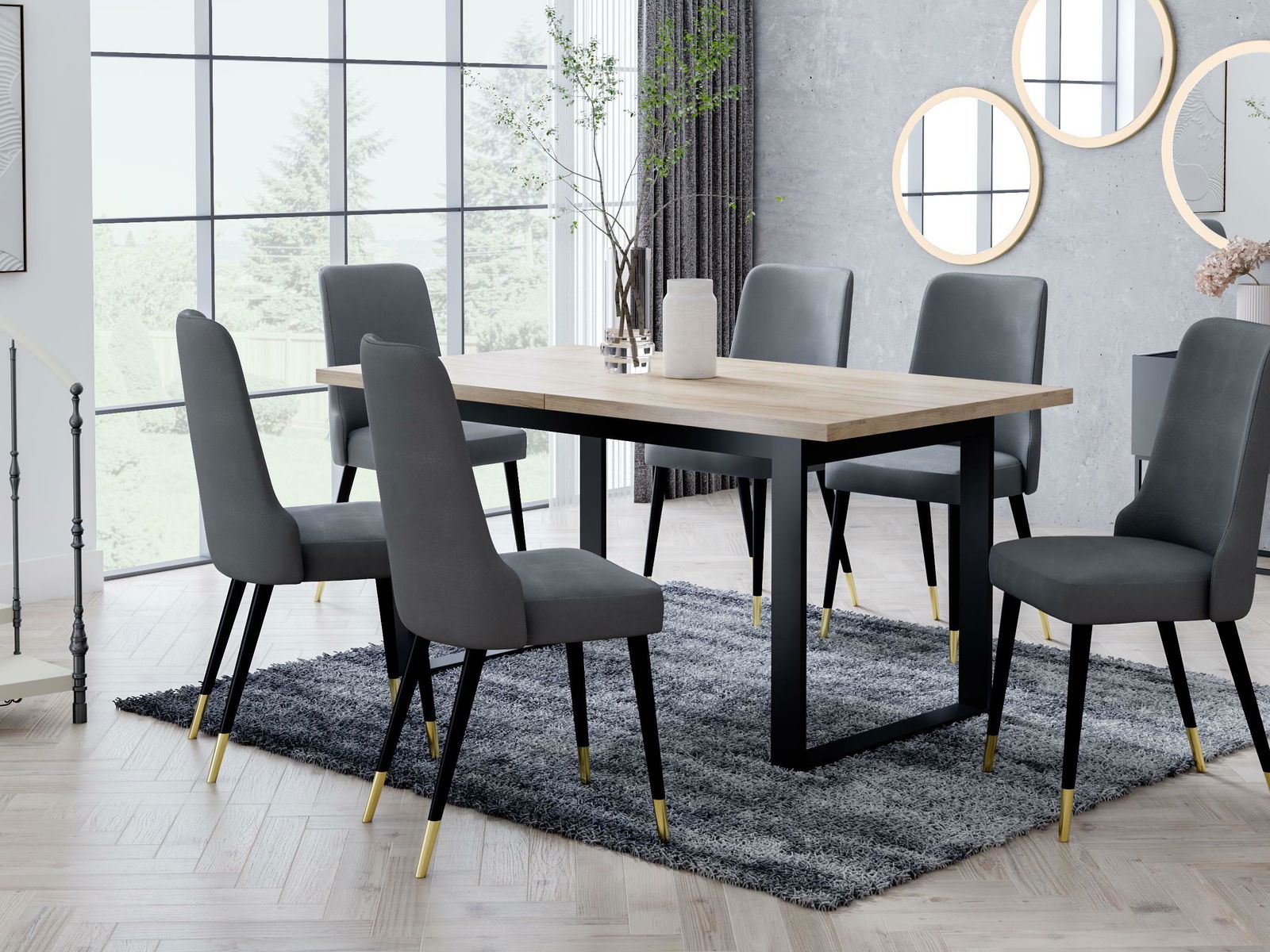 - Jídelní set Ostoma (tmavě šedá + černá + dub sonoma + zlatá)