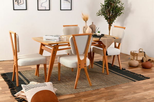 Jídelní set - Paulie (Dub + Krémová) je kvalitní a elegantní kousek nábytku pro váš jídelní prostor. S výškou 75 cm, šířkou 160 cm a hloubkou 80 cm je dostatečně velký, aby v něm pohodlně sedělo několik osob. a krémově barveného materiálu přidává do vaší jídelny stylový a moderní vzhled Set obsahuje stůl a židle, které jsou vyrobeny z kvalitních materiálů a jsou odolné vůči každodennímu opotřebení. Jídelní set Paulie je ideální volbou pro ty, kteří hledají spojení kvality, komfortu a stylu pro svůj jídelní prostor.