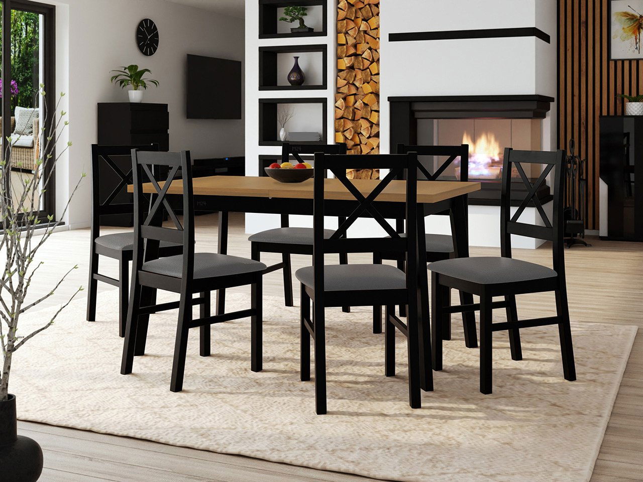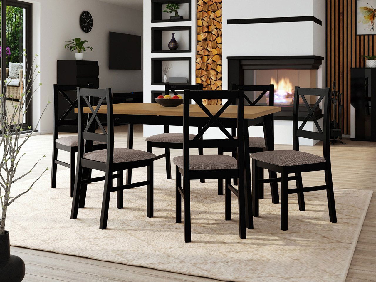 Jídelní set (pro 6 osob) Amici AL43 (dub artisan + černá + taupe)