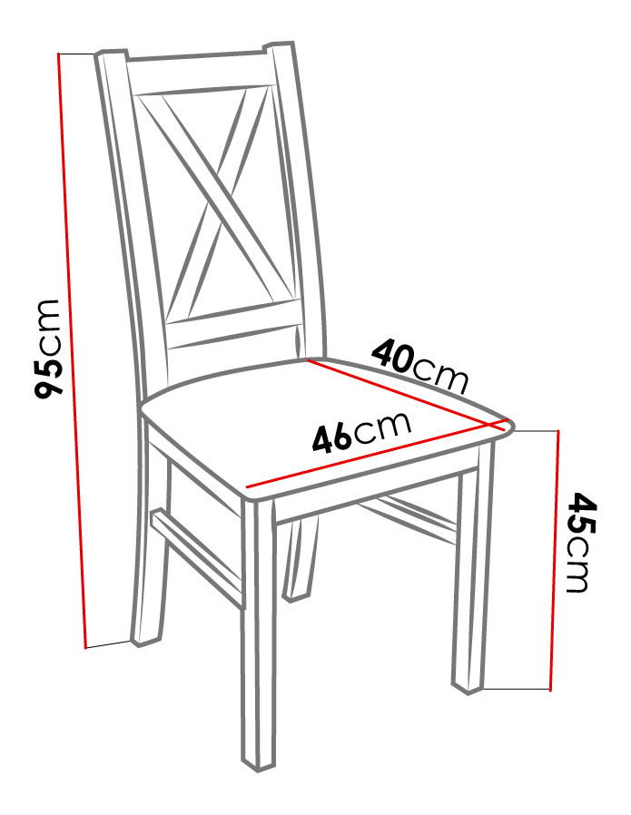 šířka: 46 cm, výška: 95 cm, výška sedáku: 45 cm, hloubka sedáku: 40 cm