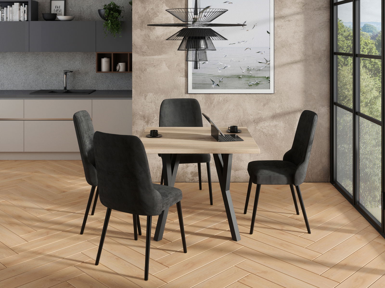 - Jídelní set Raviel83 (dub sonoma + černá + kronos 27132)