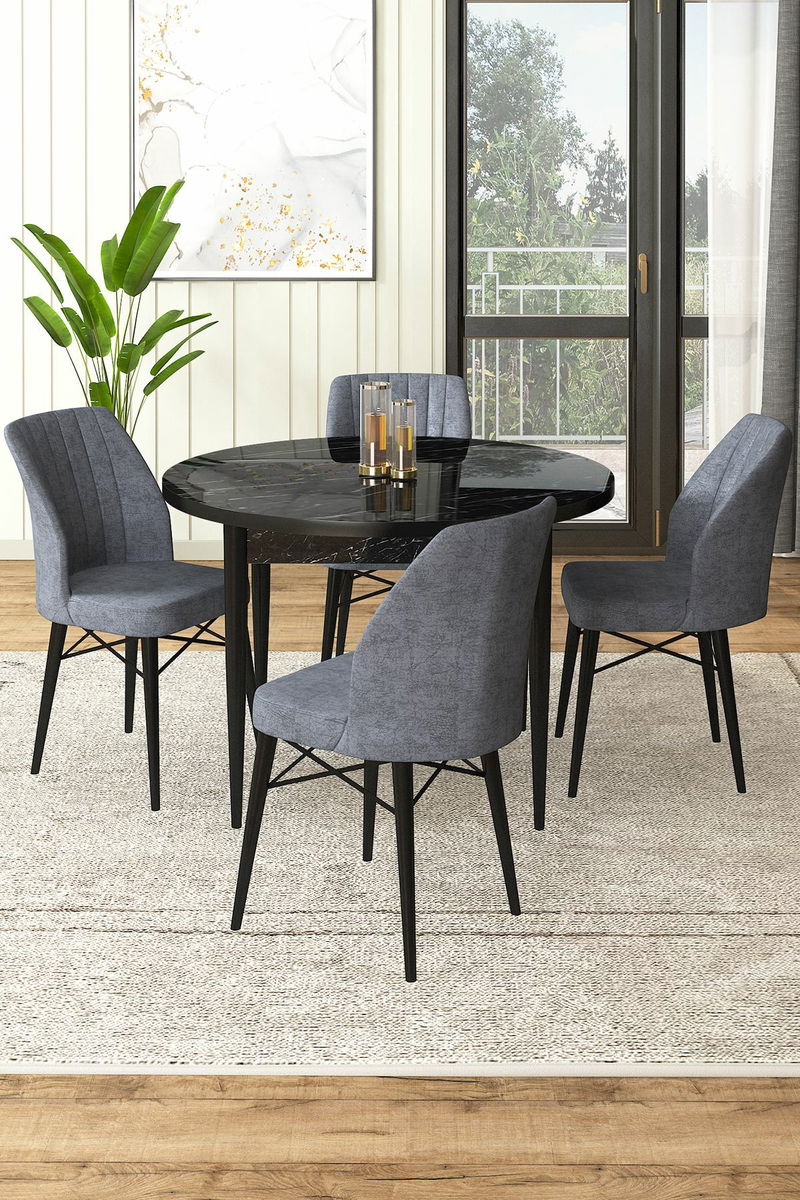 Jídelní set Roxie (mramor černý + šedá) (pro 4 osoby)