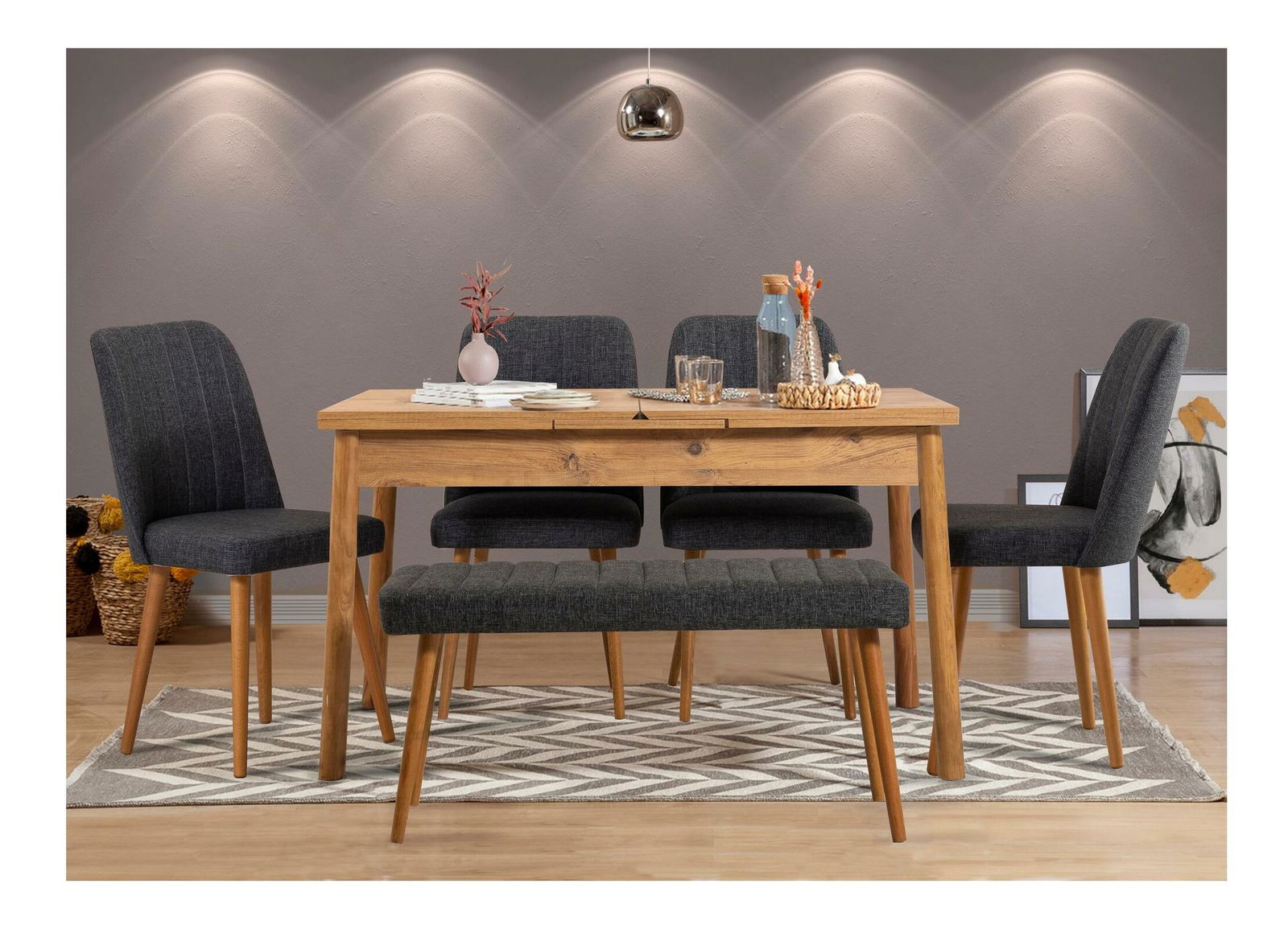 Jídelní set Senteago 2 (pro 6 osob) (borovice atlantická + antracit)