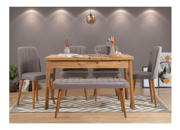 Jídelní set Senteago 2 (pro 6 osob) (borovice atlantická + šedá)