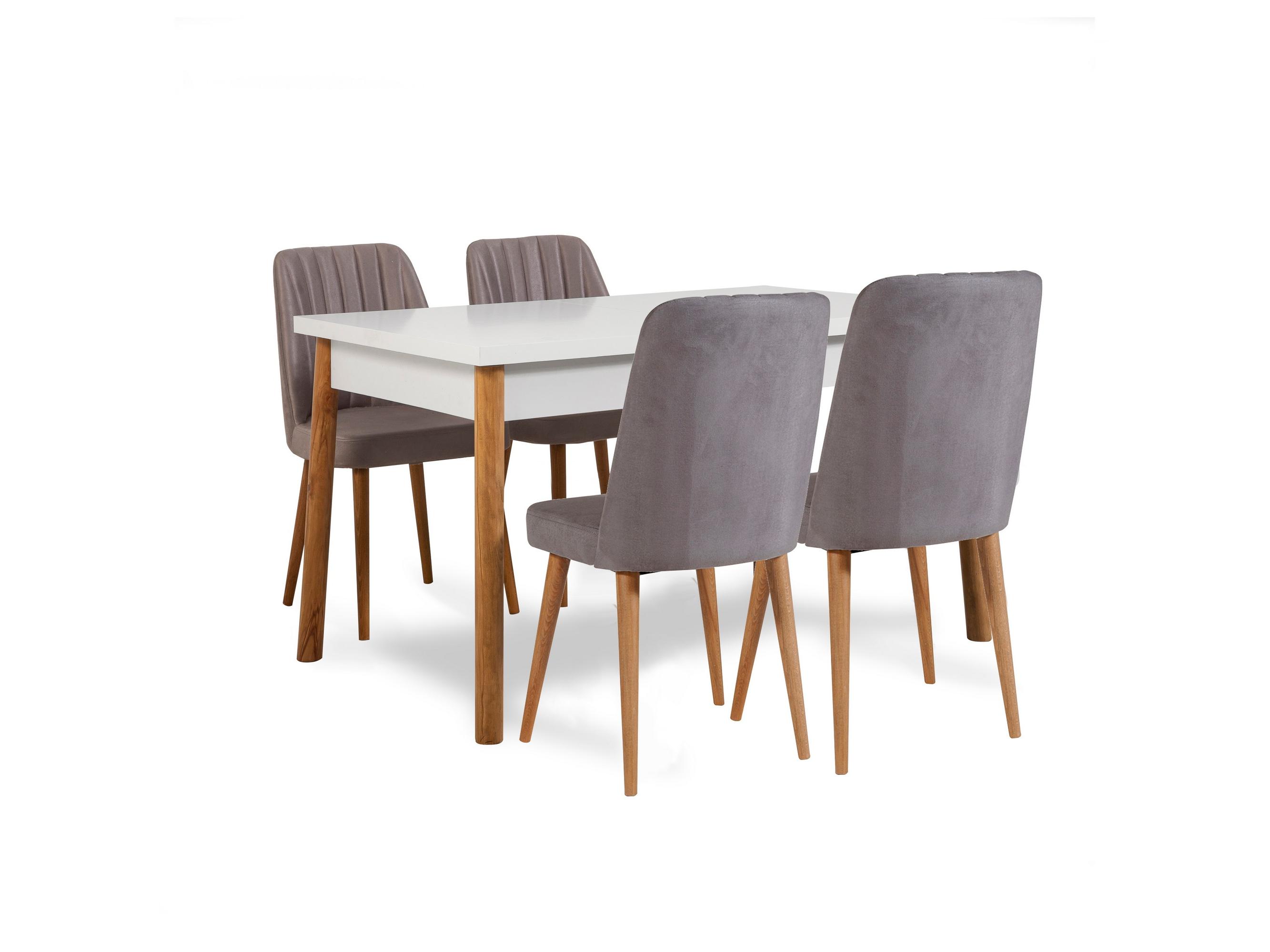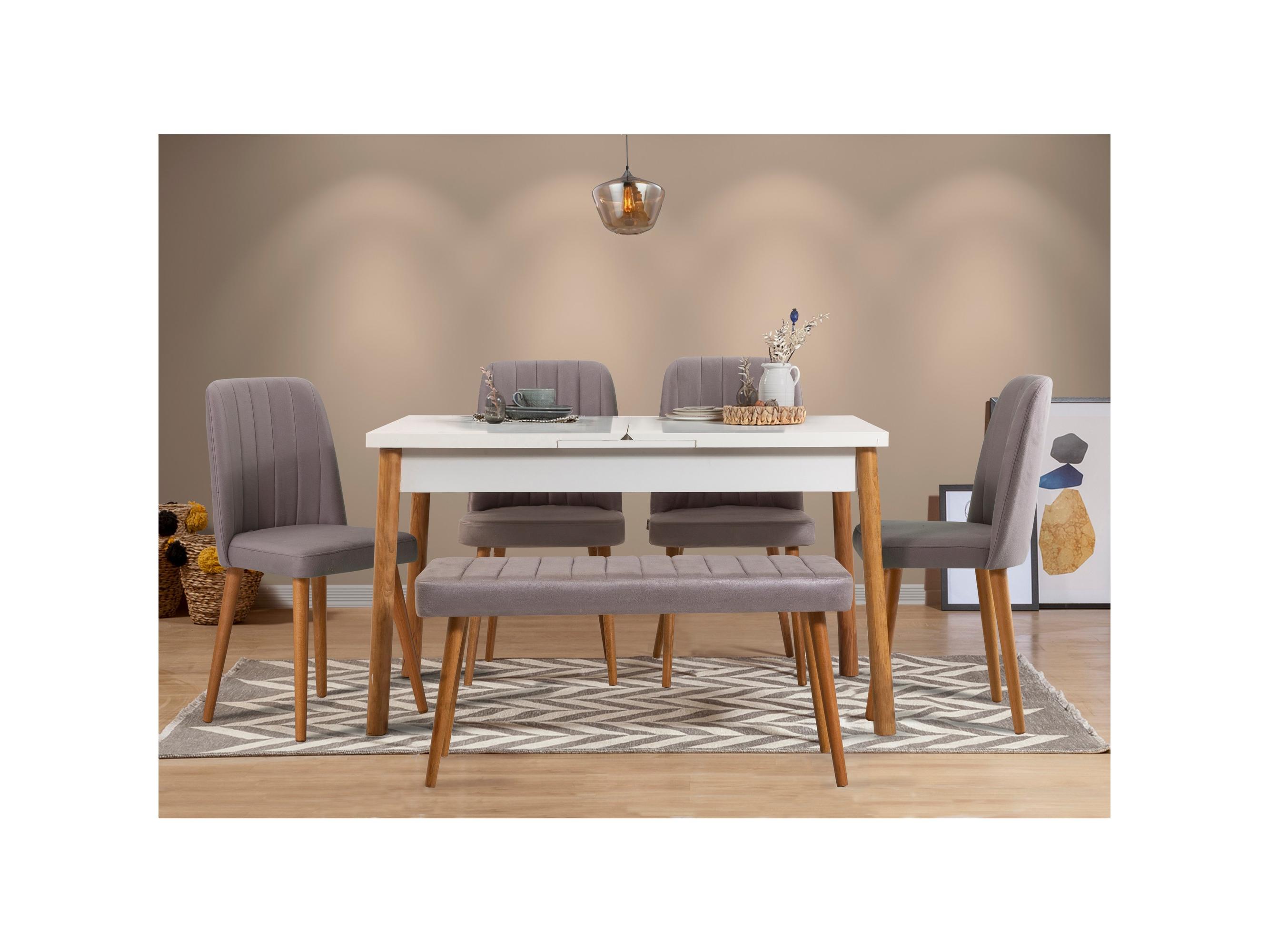 Jídelní set Senteago 1 (pro 6 osob) (borovice atlantická + bílá + šedá)