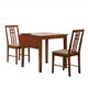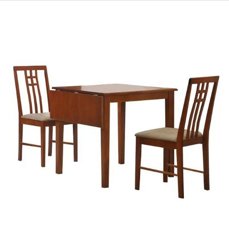 Jídelní set klasického designu složený z rozkládacího stolu a dvou židlí.