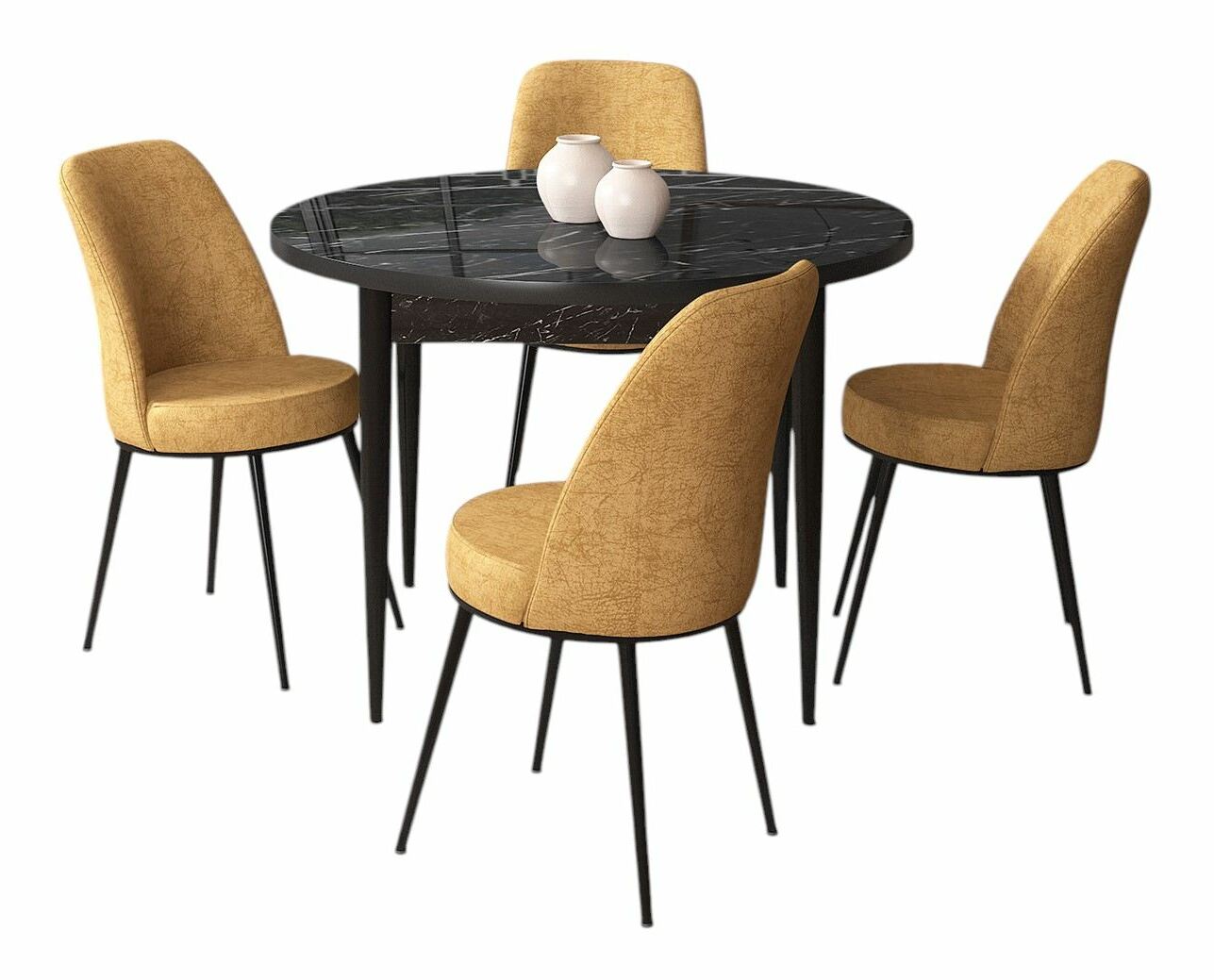 Jídelní set Torra (mramor černý + hnědá) (pro 4 osoby)