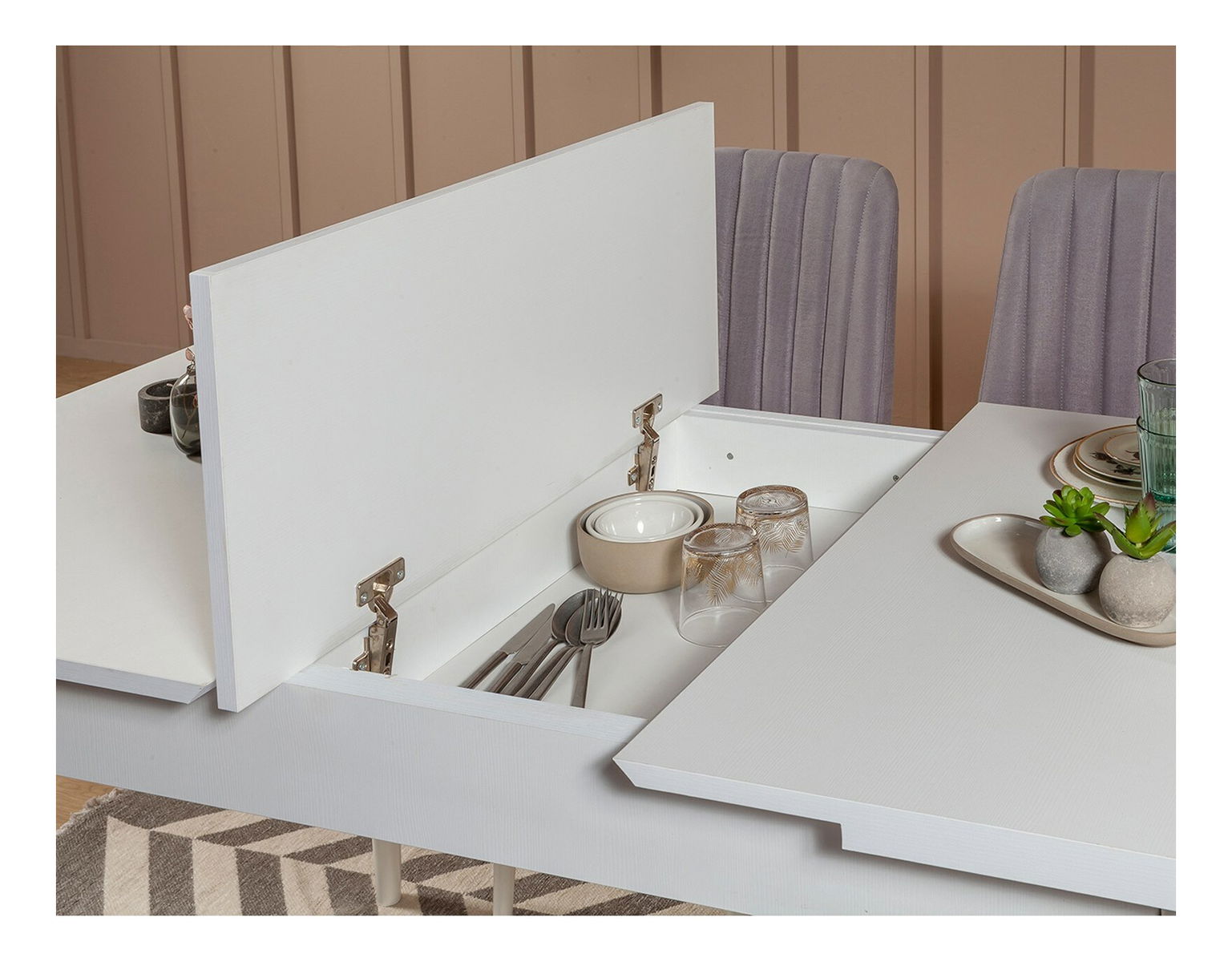 ZobrazitRozkládací jídelní stůl se 4 židlemi - Vlasta (Bílá + Šedá) je praktickým a elegantním řešením pro vaši jídelnu či kuchyni. S výškou 75 cm, šířkou 129 cm a hloubkou 80 cm poskytuje dostatek místa pro pohodlné sezení a stravování. Tento stůl je vyroben z kvalitních materiálů, což zaručuje jeho dlouhou životnost a odolnost vůči poškození. Ideální pro rodinná setkání nebo večerní posezení s přáteli. Jeho bílo-šedý vzhled přinese do vašeho interiéru moderní a stylový dotek. Užívejte si kvalitní a pohodlné stolování s tímto rozkládacím jídelním stolem Vlasta.