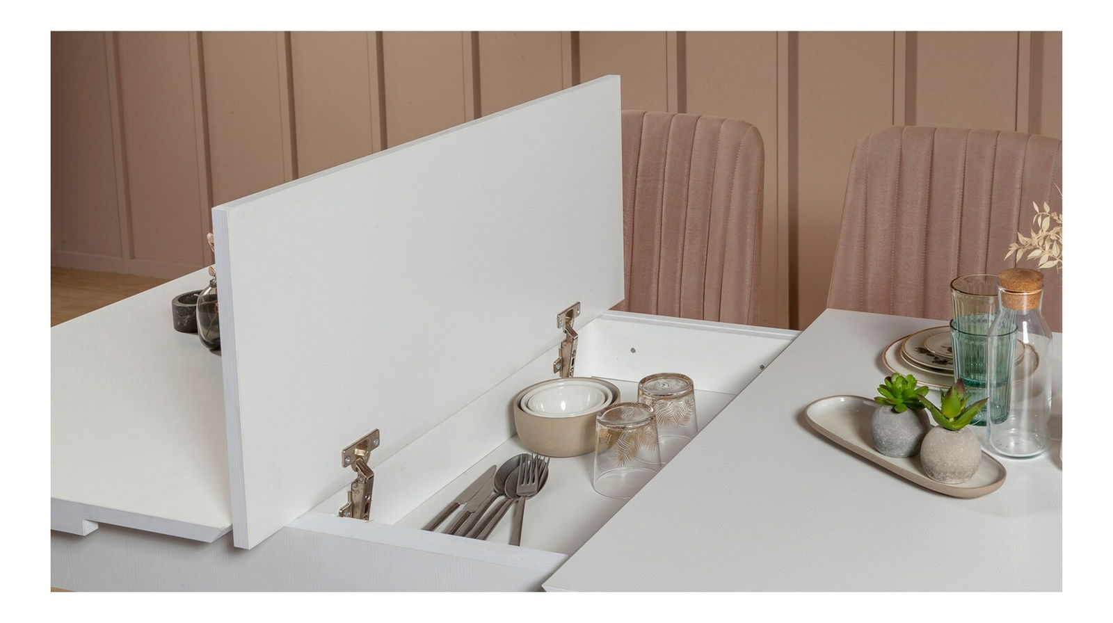 ZobrazitRozkládací jídelní stůl se 4 židlemi - Vlasta (Bílá + Šedá) je praktickým a elegantním řešením pro vaši jídelnu či kuchyni. S výškou 75 cm, šířkou 129 cm a hloubkou 80 cm poskytuje dostatek místa pro pohodlné sezení a stravování. Tento stůl je vyroben z kvalitních materiálů, což zaručuje jeho dlouhou životnost a odolnost vůči poškození. Ideální pro rodinná setkání nebo večerní posezení s přáteli. Jeho bílo-šedý vzhled přinese do vašeho interiéru moderní a stylový dotek. Užívejte si kvalitní a pohodlné stolování s tímto rozkládacím jídelním stolem Vlasta.