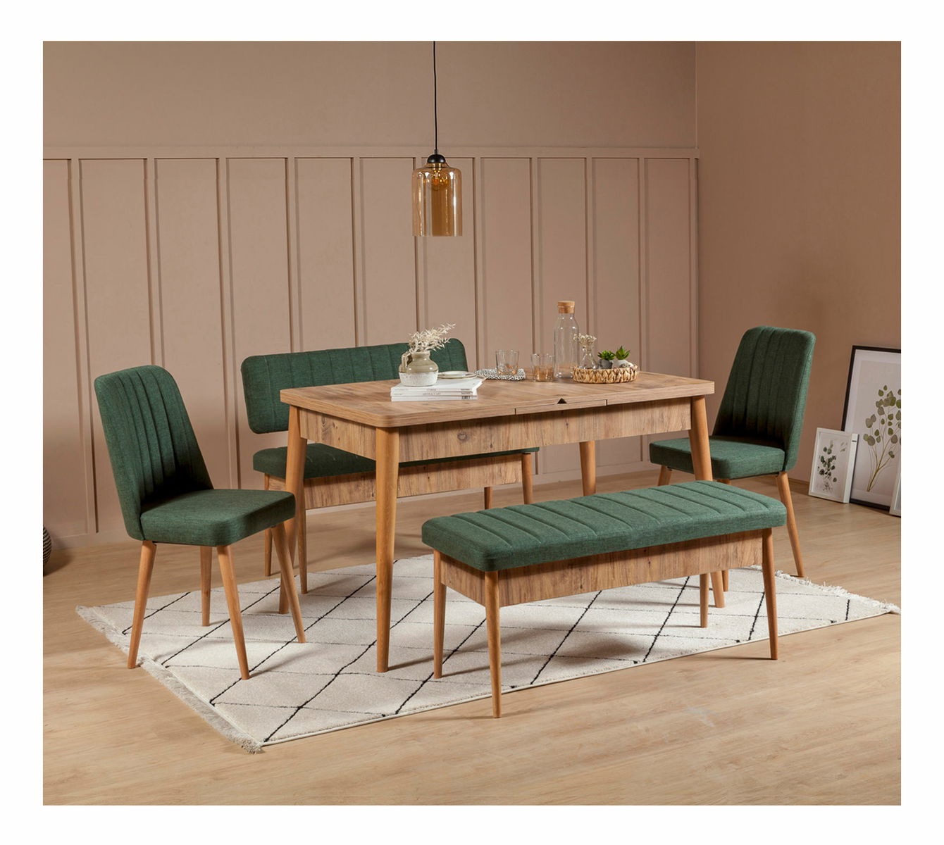 Jídelní set Vlasta 2 (borovice antlantic + zelená) (pro 6 osob)