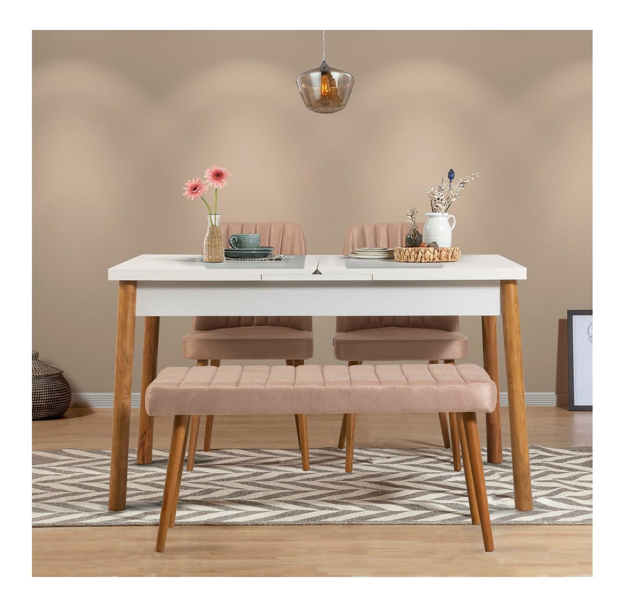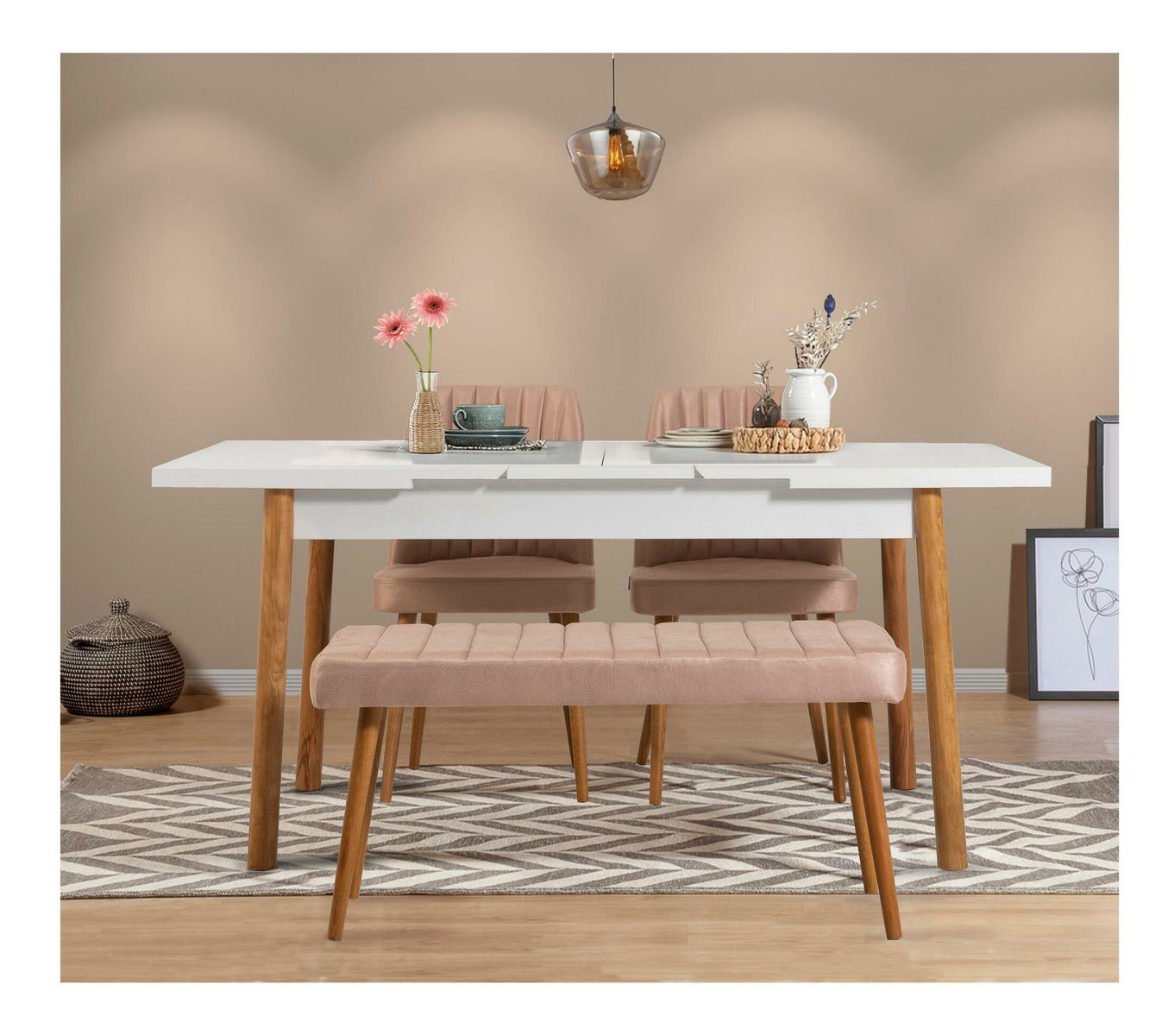 Jídelní set Vlasta 4 (borovice atlantická + bílá + kámen) (pro 4 osoby)