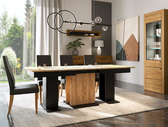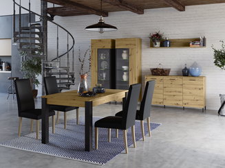 Jídelní sety s možností vyskládat jídelnu obsahují kromě jídelního stolu a židlí i další kusy nábytku, které jsou laděny do stejného designu. Chcete-li si zařídit jídelnu v jednotném stylu, rozšířené jídelní sety vám značně zjednoduší práci. Do místnosti si dle vlastního uvážení můžete přidat sladěnou komodu, vitrínu, regál nebo zrcadlo.