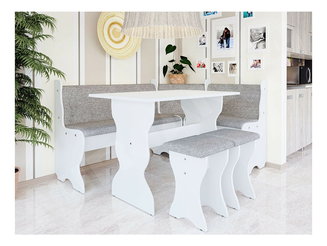 Alternativou ke klasickému sezení je jídelní set s lavičkou místo židlí. Levný jídelní set s rohovou lavicí šetří místo v kuchyni, ale také vaši peněženku. Hodí se také do velmi malé panelákové kuchyně.