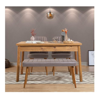 Jídelní sety s možností vyskládat jídelnu obsahují kromě jídelního stolu a židlí i další kusy nábytku, které jsou laděny do stejného designu. Chcete-li si zařídit jídelnu v jednotném stylu, rozšířené jídelní sety vám značně zjednoduší práci. Do místnosti si dle vlastního uvážení můžete přidat sladěnou komodu, vitrínu, regál nebo zrcadlo.