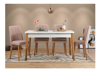 - Materiál: Jídelní sety jsou mnohdy kombinací dvou materiálů. Nejčastěji se setkáváme se dřevem a kovem nebo dřevem a čalouněním. U nás si vyberete ze světlých odstínů, ale také tmavých. Záleží samozřejmě na vašich preferencích. Oblíbené jsou hlavně bílé jídelní sety nebo příjemná atmosféra dekoru dub sonoma.