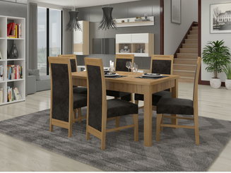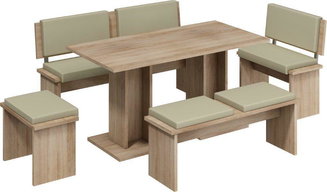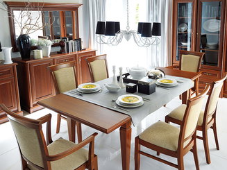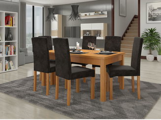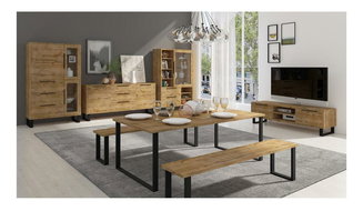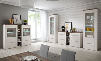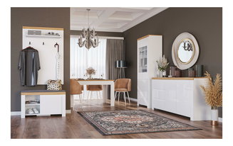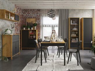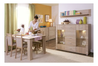 Jídelní sety s možností vyskládat jídelnu obsahují kromě jídelního stolu a židlí i další kusy nábytku, které jsou laděny do stejného designu. Chcete-li si zařídit jídelnu v jednotném stylu, rozšířené jídelní sety vám značně zjednoduší práci. Do místnosti si dle vlastního uvážení můžete přidat sladěnou komodu, vitrínu, regál nebo zrcadlo.