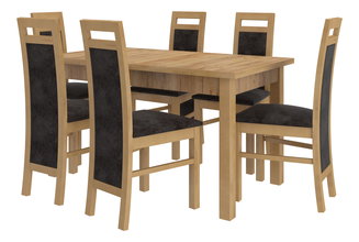 - Materiál: Jídelní sety jsou mnohdy kombinací dvou materiálů. Nejčastěji se setkáváme se dřevem a kovem nebo dřevem a čalouněním. U nás si vyberete ze světlých odstínů, ale také tmavých. Záleží samozřejmě na vašich preferencích. Oblíbené jsou hlavně bílé jídelní sety nebo příjemná atmosféra dekoru dub sonoma.