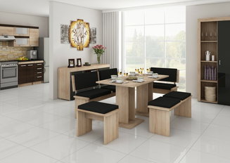 Alternativou ke klasickému sezení je jídelní set s lavičkou místo židlí. Levný jídelní set s rohovou lavicí šetří místo v kuchyni, ale také vaši peněženku. Hodí se také do velmi malé panelákové kuchyně.