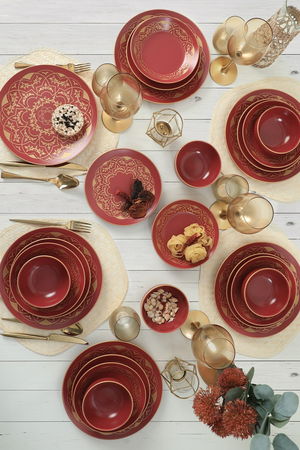 Jídelní souprava (24 ks.) Orelia (červená + zlatá)