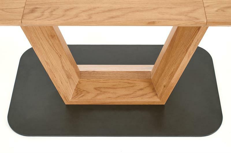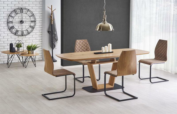 Rozkládací jídelní stůl Agate v dubovém zlaté barvě s černými detaily je ideálním řešením pro větší rodiny či přátelská setkání. Výška 76 cm a hloubka 90 cm zaručují dostatek místa pro pohodlné sezení a konverzaci. Stůl je vyroben z laminované MDF desky a lakované oceli, což zaručuje jeho odolnost a trvanlivost. S jeho rozložením až do délky 220 cm je tento stůl skutečným klenotem pro každou večeři.