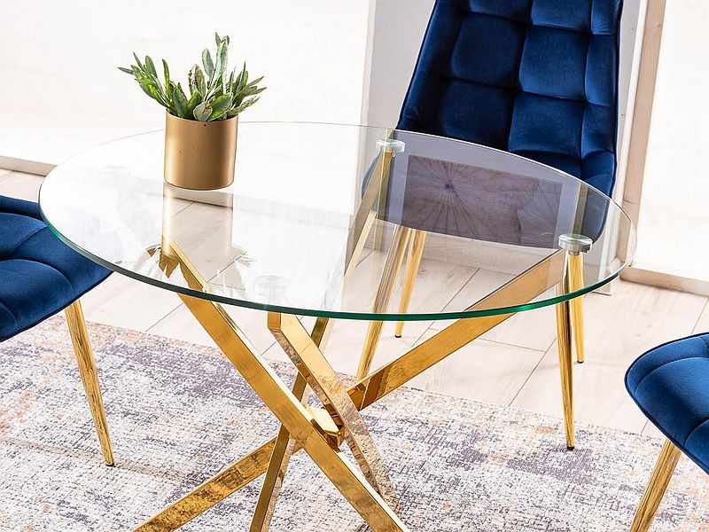 Jídelní stůl Alix (sklo + zlatá) (pro 4 osoby)