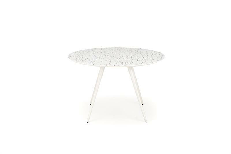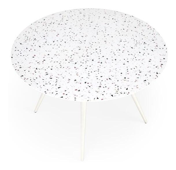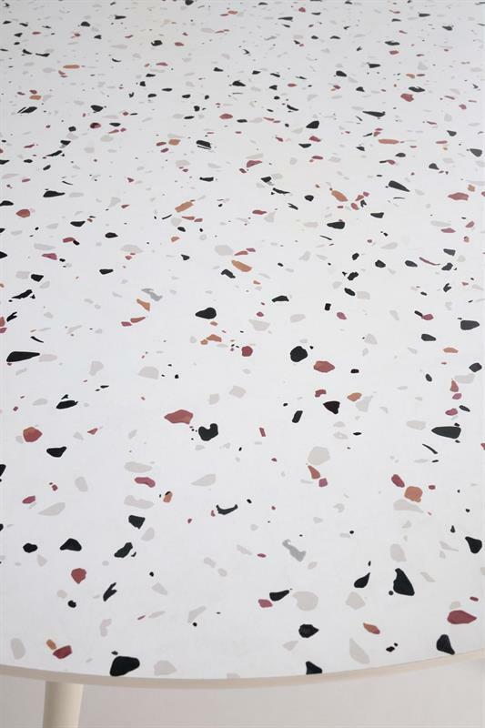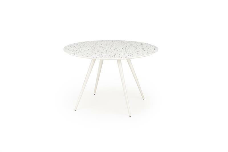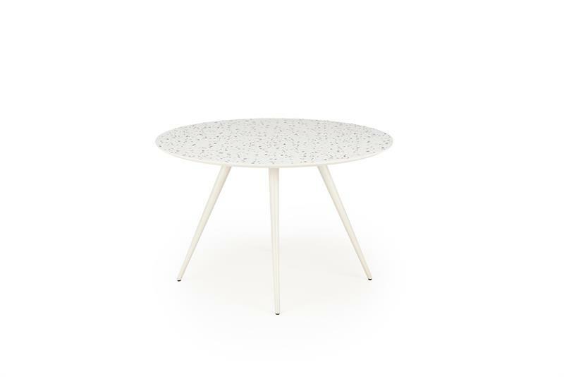 Koupě kulatého stolu Artemiso je skvělý způsob, jak vnést do vašeho interiéru moderní a stylový prvek. Celobílé barevné schéma dodává místnosti lehkost a svěžest a dodává místnosti moderní a elegantní charakter. Kovové, bílé nohy zajišťují stabilitu a odolnost, díky čemuž je stůl nejen estetický, ale také praktický. Stolová deska vyrobená z MDF v bílém teraci je spojením funkčnosti a estetiky, díky čemuž je stůl Aramis nejen stylový, ale také snadno se čistí. Jeho kulatý tvar podporuje volnou konverzaci a vytváří příjemnou atmosféru při rodinných setkáních nebo večírcích.