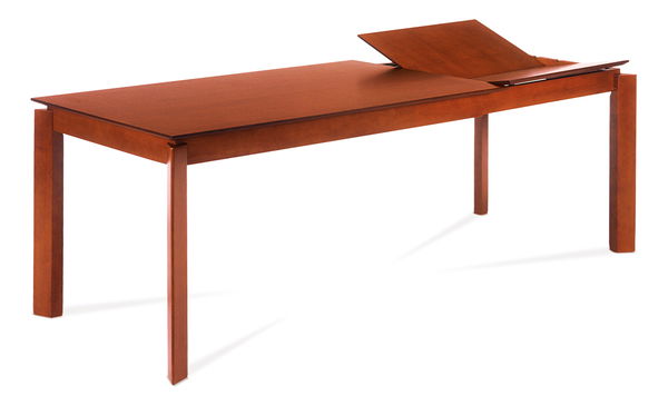 Krásný a přitažlivý jídelní stůl rozkládací celodřevěný v provedení třešeň. Zajímavé nohy, upevněné pod 45 stupňovým úhlem.